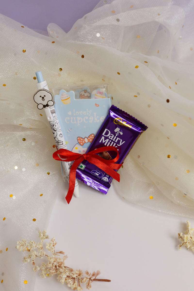 Brighten up study time with our sticky note fun pack, the perfect combination of practicality and delight for kids and students. This handy kit includes colorful sticky notes for reminders and quick messages, a pen & pencil set for easy writing and neat work, and a Dairy Milk chocolate bar to sweeten breaks in the most delicious way. Designed to be both useful and fun, it makes school, homework, and everyday tasks a lot more enjoyable.